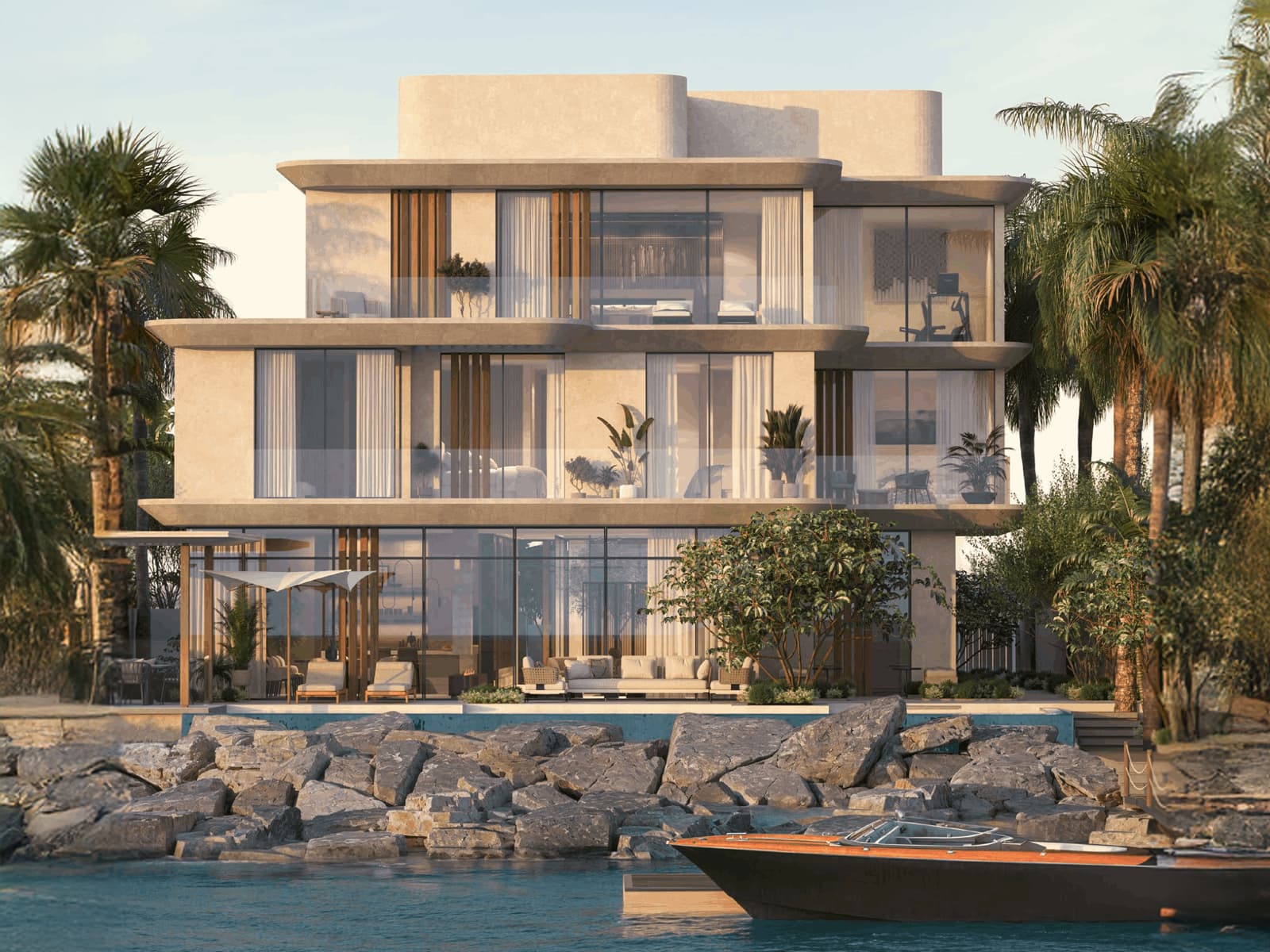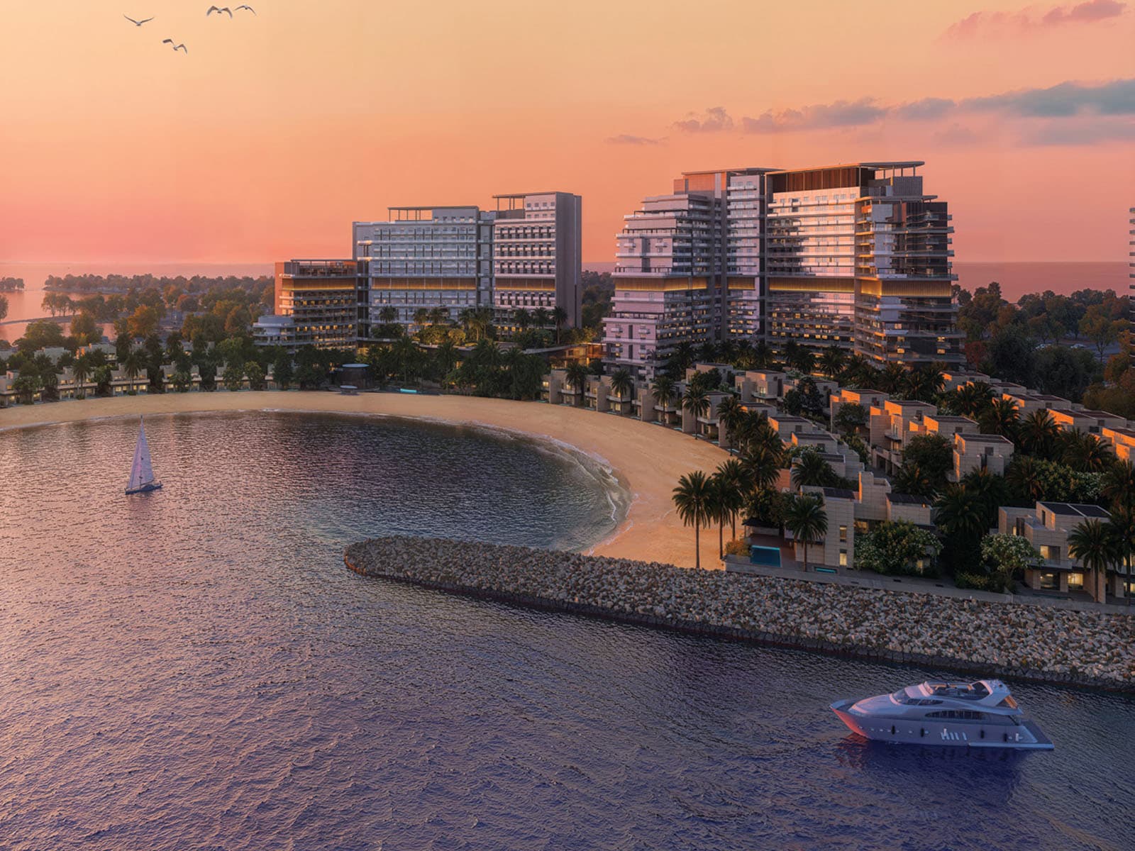 Located on the shores of Hayat Island in Mina Al Arab, Anantara Mina Residences is a seafront sanctuary where the Anantara brand’s unmatched luxury meets endless sea views. From spacious apartments with wide balconies to waterfront villas with infinity pools and boat docks, these units are cocoons that fuse Thai and Arabian motifs with contemporary nautical elegance. Community amenities include a yoga studio, fitness centre, children’s clubs, a restaurant and café, and pools.