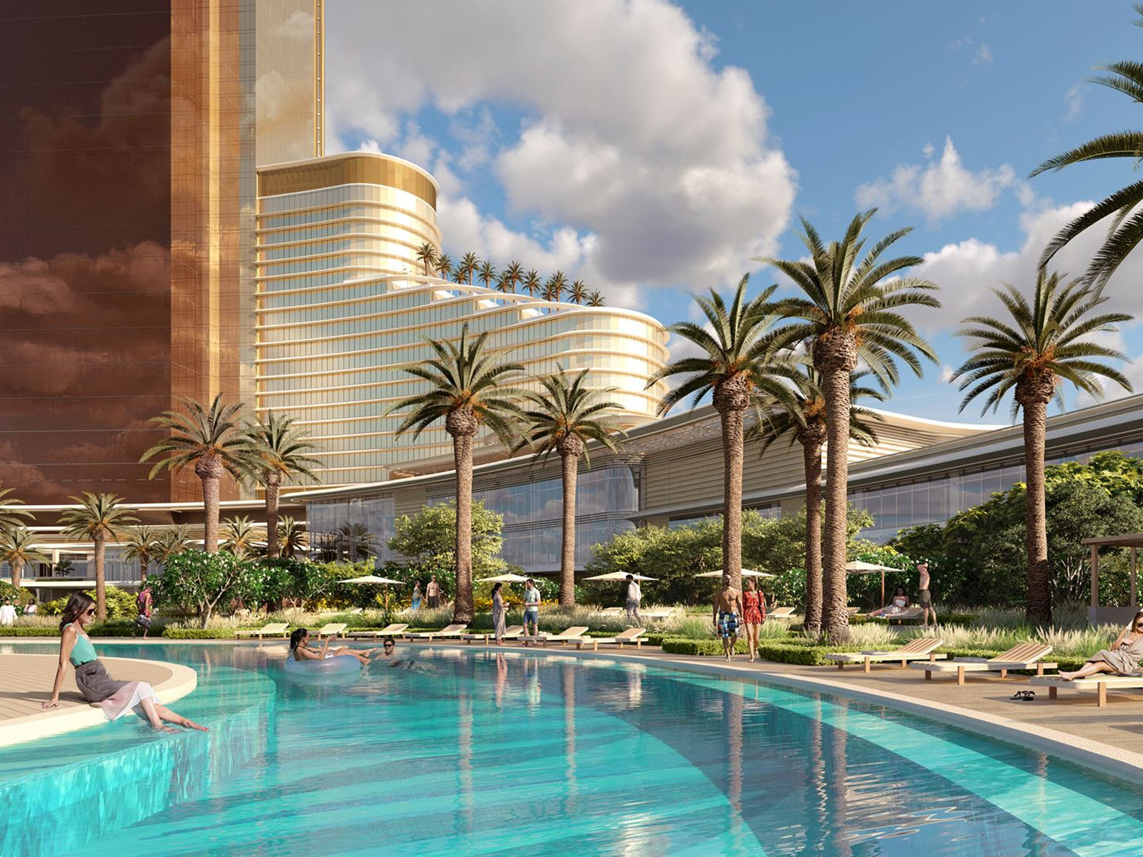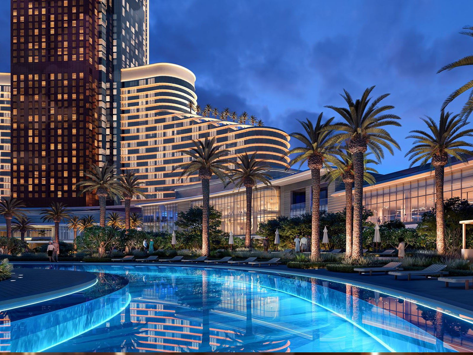 Construction progress is well underway, with 64% of the structural concrete completed up to the 34th floor of the resort’s main tower, and elevator cores extending to the 36th floor. The project is progressing at a pace of one floor per week, with plans for the topping off to occur in December of this year. Over the past 100 days, the tower has risen by approximately 140 feet.